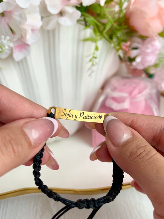 Pulsera tejida con placa grabada